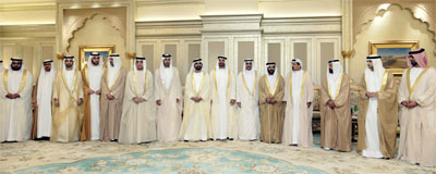 وحضر المأدبة صاحب السموّ الشيخ حميد بن راشد النعيمي، عضو المجلس الأعلى حاكم عجمان، وصاحب السموّ الشيخ حمد بن محمد الشرقي، عضو المجلس الأعلى حاكم الفجيرة، وصاحب السموّ الشيخ سعود بن صقر القاسمي، عضو المجلس الأعلى حاكم رأس الخيمة، والفريق أول سموّ الشيخ محمد بن زايد آل نهيان، ولي عهد أبوظبي نائب القائد الأعلى للقوات المسلحة، وسموّ الشيخ حمدان بن محمد بن راشد آل مكتوم، ولي عهد دبي، وسموّ الشيخ حمدان بن راشد آل مكتوم، نائب حاكم دبي وزير المالية، وسموّ الشيخ سلطان بن محمد بن سلطان القاسمي، ولى عهد ونائب حاكم الشارقة، وسموّ الشيخ عمار بن حميد النعيمي، ولي عهد عجمان، وسموّ الشيخ محمد بن حمد بن محمد الشرقي، ولي عهد الفجيرة، وسموّ الشيخ راشد بن سعود بن راشد المعلا، ولي عهد أم القيوين، وسموّ الشيخ محمد بن سعود بن صقر القاسمي، ولي عهد رأس الخيمة، وسموّ الشيخ حمدان بن زايد آل نهيان، ممثل الحاكم في المنطقة الغربية.
