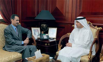 التقى مدير عام محاكم دبي، الدكتور أحمد سعيد بن هزيم، في مكتبه، القنصل العام الجديد للمملكة الأردنية الهاشمية في دبي صقر أبوشتال النعيمي.