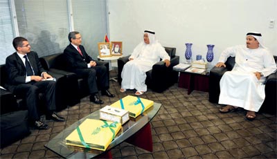 بحث مدير جامعة الإمارات، الدكتور عبدالله الخنبشي، مع السفير الفرنسي المعتمد لدى الدولة، ألين أزواو، علاقات التعاون بين الجامعة والجامعات الفرنسية المماثلة، وما يتصل ببرامج الدراسات العليا وبرامج البحوث المشتركة، ودراسة اللغة الفرنسية في كلية العلوم الإنسانية والاجتماعية بالجامعة. واتفق الطرفان على استمرار التعاون العلمي والثقافي، خصوصاً الذي يتعلق بتنظيم وتوسيع برامج تبادل الزيارات بين أعضاء الهيئة التدريسية والطلبة، خلال برامج الفصل الدراسي الصيفي.