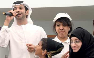 وشارك السعيد الأطفال الغناء واليولة في قسم الدراما الحركية. وقال إن «واجب الفنان رسم البسمة على شفاه هؤلاء الأطفال من ذوي الإعاقة، وأن يكون جزءاً فاعلاً من نسيج مجتمعه، من خلال التفاعل مع قضاياه وهمومه وأفراحه وأعياده»، مؤكداً أن علاقته بمركز راشد لعلاج ورعاية الطفولة بدأت منذ أن كان المركز في «فيلا» مستأجرة بمنطقة جميرا، وقبل أن ينتقل إلى موقعه الحالي في البرشاء.