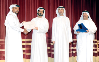كرّم الشيخ سالم بن عبدالرحمن القاسمي، مدير مكتب صاحب السمو حاكم الشارقة، ورئيس دائرة الثقافة والإعلام، عبدالله بن محمد العويس، ومدير إدارة المسرح المنسق العام لمهرجان المسرح المدرسي أحمد بورحيمة، أمس، جمعة غريب بجائزة الشخصية المسرحية المميزة التي أسهمت في إثراء المسرح الإماراتي بشكل كبير، على مدى أكثر من نصف قرن. وبسبب مرضه، تسلم الجائزة نيابة عنه ابنه أحمد. ثم عرضت مسرحية «يوم في حياة نحلة» لمدرسة عاتكة بنت زيد من مدينة خور فكان.