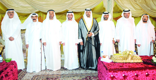 حضر الشيخ خليفة بن سعيد بن محمد آل نهيان الحفل الذي أقامه فالح حمد محمد النعيمي، بمناسبة زفاف نجله عبدالله إلى كريمة عمران سلطان عمران النعيمي، بصالة الأفراح بالهيلي في مدينة العين.