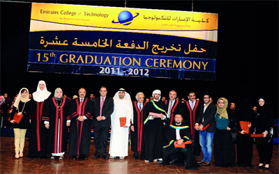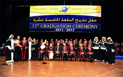 احتفت كلية الإمارات للتكنولوجيا بتخريج الدفعة الـ،15 التي بلغ عددها 439 خريجاً وخريجة، خلال احتفال أقامته الكلية أخيراً بالمسرح الوطني في أبوظبي.