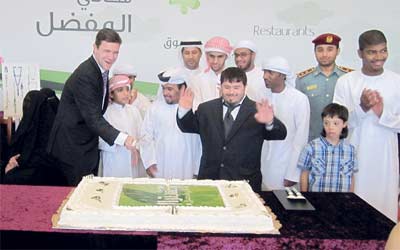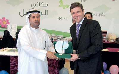 تسلم الرئيس التنفيذي لـ«سوق إكسترا» جستن ويلشاو، درعاً تذكارية من مدير مركز العين لرعاية وتأهيل ذوي الاحتياجات الخاصة محمد خميس الحدادي، نظراً للجهود التي تقوم فيها «سوق إكسترا» في دعم المركز.