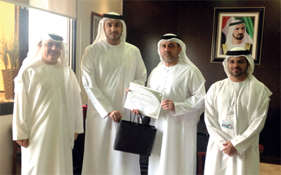 كرّم مدير أول إدارة التراخيص العقارية في دائرة الأراضي والأملاك في دبي يوسف الهاشمي، مدير قسم التصاريح والتفتيش في الدائرة، سلطان السويدي لجهوده المتميزة في العمل، بحضور مدير قسم التراخيص علي عبدالله، ومدير قسم تسجيل الوسطاء مبارك بالجافلة.