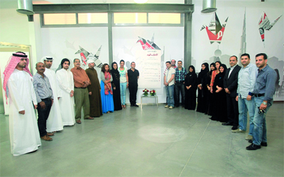 صحافيو «الإمارات اليوم» خلال توقيعهم المبادرة. تصوير: باتريك كاستيلو