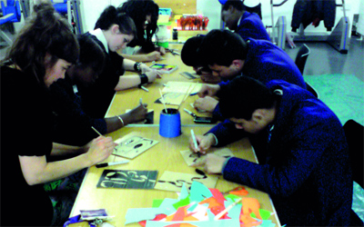 نظمت الإدارة العامة لمراكز الأطفال والفتيات بالشارقة، مجموعة من الورش الفنية، المحلية والدولية، أخيراً، في إطار استعداداتها لإطلاق الدورة الثالثة لبينالي الشارقة الدولي لفنون الأطفال في الفترة من 25 نوفمبر إلى 25 يناير المقبلين، تحت شعار «من أول السطر»، ومن بين الورش التي نفذتها الإدارة ورشة عمل فنية بعنوان «الكتاب الفني»، على مدى أسبوع، استهدفت نحو 30 من طلبة أكاديمية برديج في صناعة الكتب الفنية بمدينة لندن للفئة العمرية 11إلى 16 سنة. وقدم الورشة كل من الفنان جيليان ماكفير وكريتف سيتي لمتيد، بمشاركة من الفنان نذير طنبولي، وركزت الورشة على الخطوات العملية لصناعة الكتاب من خلال تقسيم المشاركين إلى مجموعات عمل. وقالت المدير العام بالوكالة، عائشة حمد مغاور، إن «البينالي في دورته الثالثة سيحمل رسالة سلام يبشر بها الأطفال من خلال رسوماتهم التي تجسد مضامين متنوعة تعكس آمال وتطلعات الطفل، وتعبر عن خياله المجنح بالأفكار الخلاقة، إذ يعد البينالي مناسبة عالمية تسهم في الإثراء والحوار الحضاري والتآلف الثقافي بين شعوب العالم».