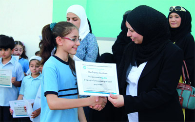 وشمل التكريم الصفوف كافة، من الأول حتى الـ،12 وقدمت مديرة المدرسة، مرح قدورة، ونائبتها لبنى عنبر، شهادات تقدير.