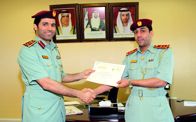 شرطة رأس الخيمة تُكرّم ضابطاً حصل على الماجستير