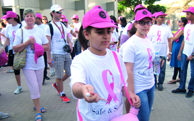 اشتركت مدرسة الخنساء للطالبات في دبي في الماراثون، الذي أُقيم في حديقة زعبيل، وخصص ريعه لمساعدة مرضى سرطان الثدي.