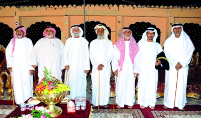 كما حضر الحفل الذي أقيم في قاعة الاحتفالات والأفراح بمنطقة زاخر بمدينة العين الشيخ محمد بن مفتاح الخاطري، والشيخ أحمد بن علي الصلف النعيمي، وعدد من المسؤولين، وكبار الشخصيات، وحشد من المدعوين والأهل والأصدقاء وزملاء العريس. وتضمن الحفل مشاركة الفرق التراثية والشعبية بأجمل العروض والأهازيج المتنوعة.