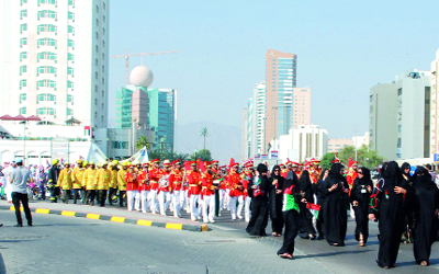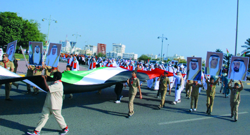 نظم مركز وزارة الثقافة والشباب وتنمية المجتمع في الفجيرة، بالتعاون مع عدد من المؤسسات الاتحادية والمحلية في الإمارة، أمس، «مسيرة روح الاتحاد»، التي انطلقت من أمام مقر الديوان الأميري في الفجيرة، وصولاً إلى ساحة الاحتفال في مركز الوزارة، احتفالاً بـ«اليوم الوطني الـ41» للإمارات. شارك في المسيرة مدير عام بلدية الفجيرة محمد سيف الأفخم، ومدير مركز الوزارة في الفجيرة سلطان مليح، ومديرو الدوائر الاتحادية والمحلية والخاصة في الإمارة وموظفوها، إضافة إلى مدارس منطقة الفجيرة التعليمية.