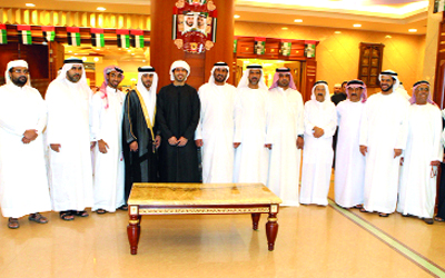 شهد الشيخ حمد بن محمد القاسمي، رئيس دائرة الأراضي والأملاك في رأس الخيمة، حفل العشاء، الذي أقامه رجل الأعمال عبدالله محمد بن طاهر النعيمي، بمناسبة زفاف نحله جاسم، إلى كريمـة عبداللـه محمد الحبشي.