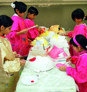 واستهدفت الورشة تعليم الصغار طرقاً وتقنيات فنية مختلفة لصنع الأقنعة من خامات متنوعة، إذ عمد خطاب إلى تمكين الأطفال من صنع أقنعة، من خلال «البالون» المغطى بعجين الورق المصنوع يدوياً، معتمداً على الخيال الطفولي الخصب في تكوين مجسمات لوجوه تباينت في ما بينها شكلاً ولوناً.
