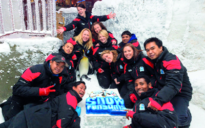 فريق «سكي دبي» يحتفل ببلوغ البطاريق عامها الأول في موطنها الجديد.