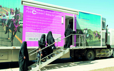 وكانت العيادات المتنقلة المرافقة لمسيرة القافلة الوردية التي أقيمت في كل من مستشفى صقر ومركز الجزيرة الحمراء قد فحصت 672 شخصاً خلال اليوم الرابع، ليرتفع عدد المتقدمين للفحص خلال الأيام الأربعة الى 2307 أشخاص، وبلغت أعداد المتقدمين من النساء في فحوص رأس الخيمة نحو 549 امرأة، فيما بلغ عدد الرجال 123 رجلاً، وشكل مواطنو الإمارات نحو 306 أشخاص، فيما شكل المقيمون 366 شخصاً، وجرى خلال فحوص اليوم الرابع تحويل 200 حالة الى فحص «الماموغرام»، و26 حالة إلى فحوص أشعة الأمواج فوق الصوتية.
