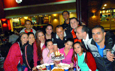 تهنئة من محمد عبدالفتاح «أبوتريكة» زميله رجب الشوني بعيد ميلاده، الذي احتفل به وسط الأصدقاء والزملاء والعاملين في مطعم «الليدوئلا