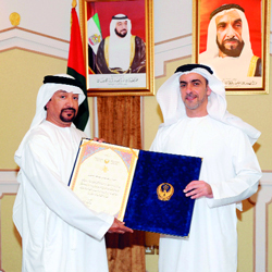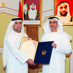 سيف بن زايد يكرّم ضابطين متقاعدين