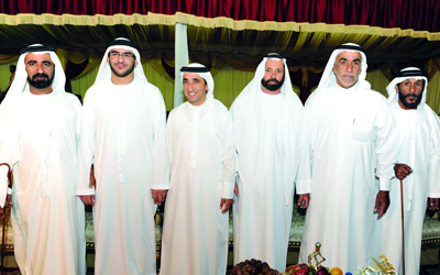 وحضر الحفل الشيخ سعيد بن جمعة آل مكتوم، وعدد من أبناء القبائل، وأهل وأقارب العروسين. وتضمّنت الحفل عروضاً تراثية وفعاليات لفرق «العيالة».