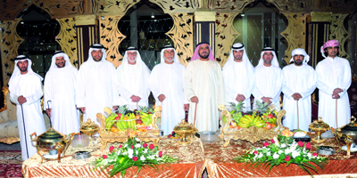 أقام خليفة سالم بن فهد الكعبي، حفل عشاء، بمناسبة زفاف نجله حميد إلى كريمة سلطان محمد العرياني.