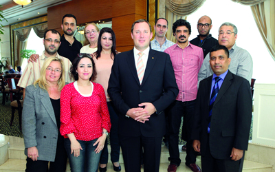 رحب مدير عام فندق ميلينيوم أبوظبي روبرشت شميتز، ومدير إدارة العلاقات العامة والإعلام نيفين عزت، بعدد من الإعلاميين في حفل غداء أقيم خصيصاً لهم لتعميق أواصر التعاون بين وسائل الإعلام المختلفة والفندق، وتقديراً لجهودهم والدعم الكبير الذى يقدمونه للفندق. وألقى خلالها المدير العام كلمة أثنى فيها على دور الإعلاميين في الإسهام وتوطيد العلاقات بين الفندق والقارئ، وتعاونهم المثمر طوال العام، كما أوضحت نيفين مجهوداتهم والدور الفعال وتعاونهم المثمر الذي يقدمونه من إسهامات مستمرة ذات دور فعال ومميز.