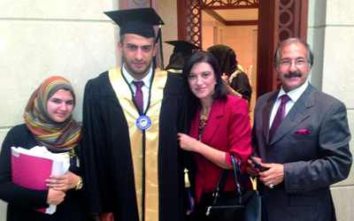 احتفل الزميل ياسين خلاني وأسرته، بحصول ابنه مهند على درجة البكالوريوس في إدارة الأعمال من جامعة دبي. تهنئة خاصة من الزملاء إلى مهند ووالديه والأهل بهذه المناسبة السعيدة.