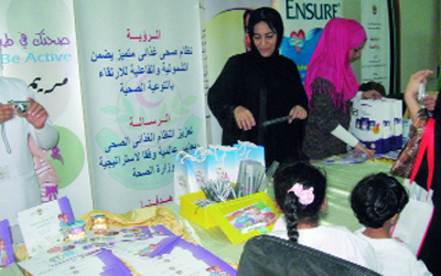 شارك قسم التغذية والتعليم الطبي في منطقة الشارقة الطبية في فعاليات الملتقى الاسري الذي اقامته بلدية دبي ومحاكم دبي، بمشاركة أكثر من 200 طفل وأمهاتهم من الموظفات. واوضحت رئيسة قسم التغذية والتعليم الطبي في منطقة الشارقة الطبية، ميسون الشاعر، ان المشاركة تمثلت بتوزيع وشرح محتوى كتيب «مريم وحسون» للغذاء الصحي في المعرض التوعوي التثقيفي، حيث صاحب عملية التوزيع للكتيب شرح مبسط لفكرة الكتيب، مع توزيع قرطاسية وكتيب تحضير فطور صحي لهم، وبعض الهدايا التذكارية للأمهات. وقامت احدى اخصائيات التغذية بشرح سلّم الهرم الغذائي، وكيفية وزن المواد الغذائية وحساب السعرات الغذائية بميزان خاص وفي متناول الجميع. واجرى القسم خلال وجوده في المعرض فحوص السكر، وحساب كتلة الجسم، والفحص المبكر للسكري. وشاركت مجموعة من الهيئات للإسعاف والدفاع المدني، ومؤسسة الشيخ محمد بن راشد، في فعاليات لمحاربة السمنة.