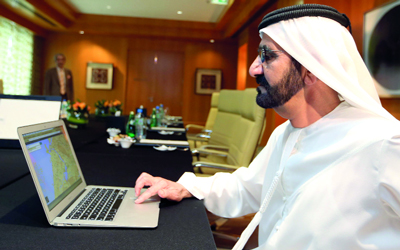 وشاهد سموه من خلال الإنترنت مبنى برج خليفة في دبي، كأول مشروع عالمي يتم بناء جولة افتراضية كاملة له عبر خرائط «غوغل»، والذي أطلق عليه «المدينة القائمة».