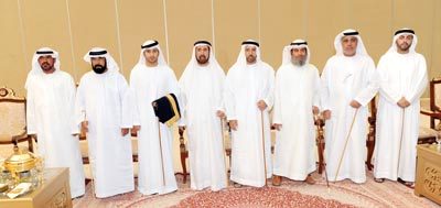 حضرالشيخ أحمد بن سرور الظاهري، رئيس المجلس البلدي بالعين، الحفل الذي أقامه أبناء المرحوم محمد علي ناصر المذيدي، بمناسبة زفاف شقيقهم مطر، إلى كريمة المستشار عبدالله حامد مصبح النيادي، وذلك في مركز العين للمؤتمرات بمدينة العين.