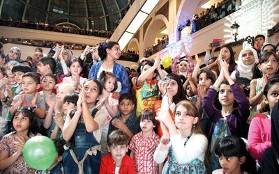 اكتظت الساحة الرئيسة في مول الإمارات بمئات العائلات التي اصطحبت أطفالها معها لحضور العرض الذي قدمته ثاني أيام العيد فرقة «كراميش»، التي تحظى بشعبية واسعة في المنطقة. وبدأ الحضور بالتوافد إلى المركز مبكراً وقبل ساعات من بدء العرض الذي استهله أبطاله، عند الساعة السادسة مساءً، بأغانٍ متنوعة طالما رددها الأطفال من خلال مشاهدتهم واستماعهم لها عبر قناة كراميش التلفزيونية.