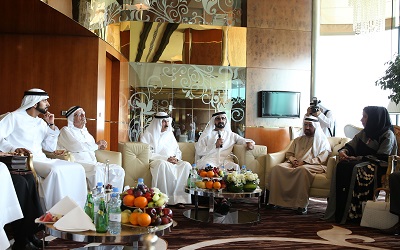 حضر صاحب السمو الشيخ محمد بن راشد آل مكتوم نائب رئيس الدولة رئيس مجلس الوزراء حاكم دبي، حفل التكريم الخاص الذي أقامه المكتب الإعلامي لحكومة دبي في فندق ميدان في منطقة ند الشبا بدبي، ظهر اليوم، بحضور سمو الشيخ حمدان بن محمد بن راشد آل مكتوم ولي عهد دبي وسمو الشيخ مكتوم بن محمد بن راشد آل مكتوم نائب حاكم دبي، لرئيس مجلس إدارة جائزة الصحافة العربية، خلفان محمد الرومي، لمناسبة عودته سالما من رحلة علاج في الخارج وتقديرا لعطاءاته وجهوده الوطنية المخلصة ودوره في بناء دولتنا الحديثة.