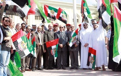وأكد المحتفلون أن هذه المناسبة الغالية ترسّخ قيم حب الوطن وصدق الانتماء لترابه، والعمل على رفع شأنه عالياً، مشيرين إلى تزامن الاحتفال بـ«يوم العَلَم»، مع يوم تولي صاحب السموّ الشيخ خليفة بن زايد آل نهيان، رئيس الدولة، مقاليد الحكم، لتؤكد تلك المبادرة من سموّه وترسّخ معاني التفاف الشعب حول قيادته، وتأكيد العهد له والوفاء لقائد المسيرة ورفع علمها الذي يعبّر عن خصوصية دولتنا وهويتها ومكوناتها، وتطوّر منجزاتها ومؤشرات تطوّرها.