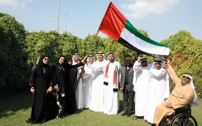 شارك آلاف المسؤولين والموظفين والعاملين في الوزارات والمؤسسات الحكومية الاتحادية والمحلية في الدولة، في احتفالية رفع العَلَم، أول من أمس، استجابة لمبادرة صاحب السموّ الشيخ محمد بن راشد آل مكتوم، نائب رئيس الدولة رئيس مجلس الوزراء حاكم دبي، بتخصيص يوم للاحتفال بالعَلَم، ورفعه بالتزامن الساعة الـ12 ظهراً.