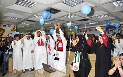 احتفلـــــت جامعــــة دبــي، أول مــن أمس، بفـوز مدينـــة دبي باستضافـــــة معـرض «إكسبــو الدولي 2020».