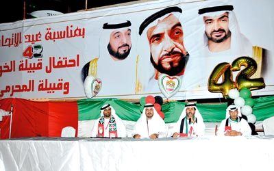 احتفلت قبيلتا الخوار والمحرمي في بني ياس في أبوظبي باليوم الوطني الـ42 لدولة الإمارات.