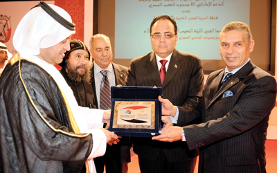 وقدم السفير المصري درع الملحقية الثقافية المصرية إلى الشيخ سعيد بن طحنون آل نهيان.