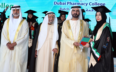 وكان صاحب السموّ الشيخ محمد بن راشد آل مكتوم، شهد، أمس، بحضور سموّ الشيخ حمدان بن محمد بن راشد آل مكتوم، ولي عهد دبي، حفل تخريج دفعتين جديدتين من خريجات كلية دبي الطبية، وكلية دبي للصيدلة. وقام سموّه خلال الحفل، الذي أقيم في مدينة جميرا، بتكريم خريجات الكليتين المتميزات. وشاهد صاحب السموّ الشيخ محمد بن راشد آل مكتوم والحضور فيلماً وثائقياً عن مبادرة «الأثر»، التي أطلقتها الكليتان خلال عام 2011، التي تجسد أفكار وآراء سموّه المتمثلة في الإصرار والعزيمة، ومواجهة التحديات، للوصول إلى الرقم (1) في شتى الميادين التعليمية والاقتصادية والاجتماعية والتنموية. ثم ألقيت عدد من الكلمات في المناسبة، وأدت الخريجات القسم الطبي وقسم الولاء للوطن والقيادة الرشيدة.