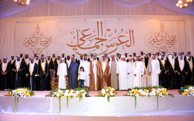 شهد سموّ الشيخ سعيد بن مكتوم بن راشد آل مكتوم، العرس الجماعي، الذي أقيم، أمس، في منطقة الاحتفالات بمنطقة ند الشبا، بمناسبة زفاف الشيخ عبدالله بن محمد بن حمدان آل نهيان، إلى كريمة المغفور له الشيخ مكتوم بن راشد آل مكتوم، بمشاركة 53 عريساً من مختلف إمارات الدولة، وبحضور الشيخ محمد بن حمدان آل نهيان، ونائب رئيس الشرطة والأمن العام بدبي، الفريق ضاحي خلفان تميم،