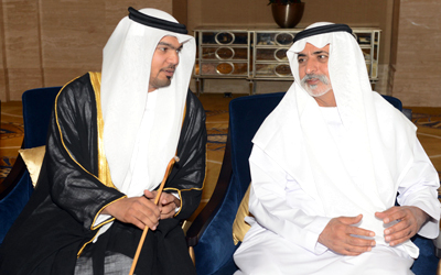 حضر الشيخ نهيان بن مبارك آل نهيان، وزير الثقافة والشباب وتنمية المجتمع، الحفل الذي أقامه مبارك عبدالله المصعبي، بمناسبة زفاف نجله المهندس الشاعر سعود إلى كريمة سالم عبيد الظاهري، وذلك في قاعة الاحتفالات بفندق سانت ريجيس في أبوظبي.