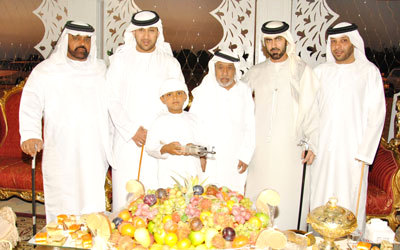 أقام شامس محمد الكتبي حفل استقبال بمناسبة زفاف نجليه محمد إلى كريمة مطر مصبح الكتبي، وسعيد إلى كريمة المرير محمد الكتبي. وحضر الحفل، الذي أقيم في ميدان الاحتفالات في الهير بالمنطقة الشرقية، عدد من الشيوخ والشخصيات وأعيان القبائل، ولفيف من الأهل والأصدقاء. وتضمن الحفل العروض الشعبية لفرقة العيالة من التراث الإماراتي.