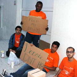 شارك 16 طالباً من الجامعة الكندية بدبي في حملة توعية لتعريف زملائهم بالمعاناة والظروف الصعبة التي يعيشها المشردون، من خلال تجريب ظروف الحياة دون مأوى لخمسة أيام ضمن الحرم الجامعي، والمساهمة في الوقت ذاته في جمع التبرعات لإحدى الجمعيات الخيرية. وشارك لأول مرة مجموعة من الطالبات ضمن مبادرة «خمسة أيام من أجل المشردين»، التي انطلقت في كندا وتهدف إلى تسليط الضوء على المحنة التي يمر بها الأشخاص المشردون الذين يعيشون على الطرقات، وجمع التبرعات لدعم المؤسسات الاجتماعية التي تدعم الأعمال الخيرية. وانضم إلى الحملة المستشار الدبلوماسي في السفارة الكندية، المتفرغ للتدريس في الجامعة، عزيز مولاي شاه.