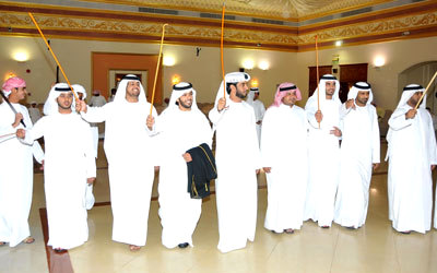 حضر الحفل، الذي أقيم بصالة الوثبة في بني ياس، الشيخ صفيان بن عيضة بن طناف المنهالي، والشيخ سهيل بن عيضة بن طناف المنهالي، وعدد من الشيوخ وشيوخ القبائل، وكبار الشخصيات والضباط، ومدعوون من مختلف إمارات الدولة، ودول مجلس التعاون الخليجي وأعيان قبيلة المناهيل، إلى جانب الأهل والأصدقاء وزملاء العريس، وتضمن الحفل عروضاً فنية تراثية منوعة.