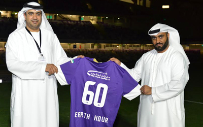احتفلت شركة العين للتوزيع، بالتعاون مع شركة نادي العين للاستثمار، بمناسبة «ساعة الأرض»، في استاد هزاع بن زايد في العين، بإطفاء جميع الأضواء والأجهزة غير الضرورية في الملعب، وإشعال الشموع دلالة رمزية لترشيد الطاقة. وتم التنسيق لهذه المبادرة مع إدارة الدفاع المدني لضمان الأمن والسلامة على أرض ملعب استاد هزاع بن زايد، أثناء الاحتفال، تزامناً مع المبادرة العالمية لساعة الأرض. وقال مدير عام شركة العين للتوزيع، محمد سالم بن عمير الشامسي: «إن (ساعة الأرض) من أهم المبادرات العالمية السنوية التي تهدف إلى لفت الأنظار نحو قضايا البيئة والطاقة، واختارت الشركة التعاون مع نادي العين لتحتفل بالمناسبة في استاد هزاع بن زايد، الذي يعد أحدث استاد في المنطقة، بهدف إيصال رسالة الترشيد إلى أكبر عدد من المتابعين».