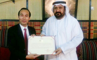 وأعرب عن سعادته بحصول الإمارات على منصب الرئيس الإقليمي للمنطقة العربية، في جمعية التبادل الصيني ـ العربي.