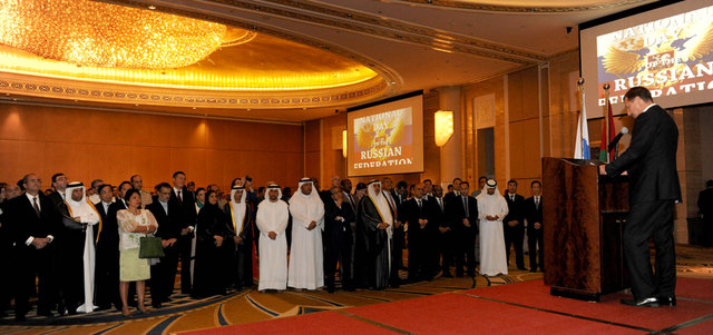 لبنى القاسمي تحضر حفل استقبال السفارة الروسية