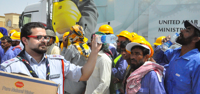 بتوجيهات مدير جامعة الشارقة بالوكالة، البروفيسور حميد مجول النعيمي، ومتابعة عميد شؤون الطلبة، البروفيسور محمود درابسة، شاركت وبتميز عشائر جوالة جامعة الشارقة بقيادة مسؤول الأنشطة الطلابية، الدكتور هشام عبدالحليم، في حملة الوقاية من الإنهاك الحراري، تحت شعار «سلامتهم غايتنا» وتستهدف 5000 عامل، وتقدم الحملة مدير منطقة الشارقة الطبية بالإنابة، الدكتور محمد عبدالله الزرعوني، ومديرة التثقيف والتعزيز الصحي، الدكتورة أمينة هاشم.