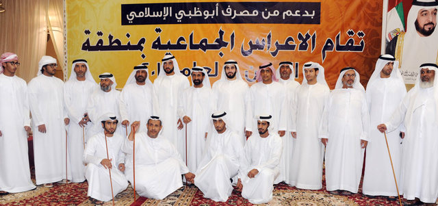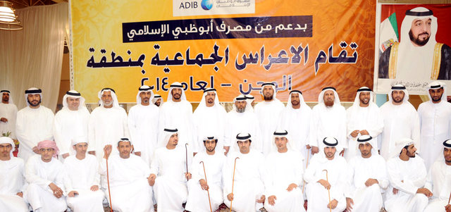 نظمت إدارة خدمة المجتمع في القطاع الجنوبي لبلدية العين، بالتعاون مع مصرف أبوظبي الإسلامي، العرس الجماعي في منطقة الوقن لعام 2014، بمشاركة 42 عريساً وفتاة من أبناء القبائل. وحضر الحفل، الذي أقيم في صالة الأفراح في مدينة الوقن، عدد من الشيوخ وكبار الشخصيات، ومديرو ومسؤولو بلدية العين ومصرف أبوظبي الإسلامي، وجمهور غفير ضم أولياء أمور العرسان وأقرباءهم، وسط مشاركة الفرق الشعبية والتراثية في تقديم العروض، إلى جانب القصائد الشعرية التي ألقيت في حب الوطن ورئيس الدولة وأصحاب السموّ الشيوخ.