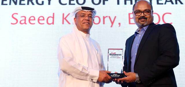 نال الرئيس التنفيذي لشركة بترول الإمارات الوطنية (إينوك)، سعيد خوري، جائزة أفضل رئيس تنفيذي للعام في قطاع الطاقة، في حفل توزيع جوائز «غلف بيزنس 2014» لقطاع الأعمال، الذي أقيم، أخيراً، في دبي. وتسلم المدير التنفيذي للتسويق في «إينوك»، زيد القفيدي، الجائزة نيابة عنه.