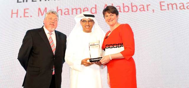 حاز رئيس مجلس إدارة «إعمار العقارية»، محمد العبار، جائزة إنجاز العمر من جوائز «غلف بيزنس 2014»، وذلك في حفل كبير أقيم أخيراً في دبي. وتسلّم العبار الجائزة من وزيرة شؤون الأعمال والتجارة والاستثمار البريطانية، آرلين فوستر، خلال الحدث الذي شهد تكريم أبرز قادة الأعمال ضمن شتى القطاعات في الإمارات.