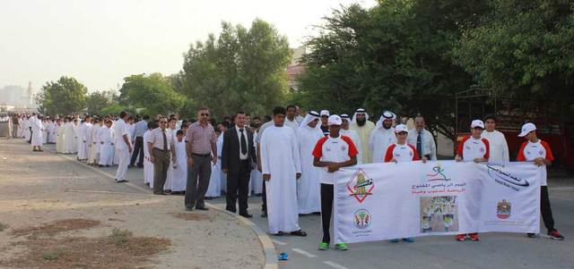 وشارك في المهرجان نحو 400 طالب من مختلف المراحل التعليمية، واستمعوا إلى محاضرة توعوية عن أهمية الرياضة ودورها في إعداد التوازن الجسدي والنفسي، وحاجة الأجيال إلى ممارسة الرياضة في أبسط صورها وأشكالها، والمتمثلة في المشي، والتي تعد من وسائل الوقاية من الكثير من أمراض العصر، كما احتوت المحاضرة على نصائح وإرشادات تتعلق بالتثقيف الرياضي من مختلف النواحي، ولجميع فئات المجتمع، بعدها قام الطلبة، برفقة الحضور وكبار الشخصيات، بممارسة رياضة المشي كيلومتراً، رافعين عدداً من الشعارات الصحية والرياضية، وجابوا المنطقة الخارجية لفناء المدرسة، مروراً بالمدارس المجاورة.